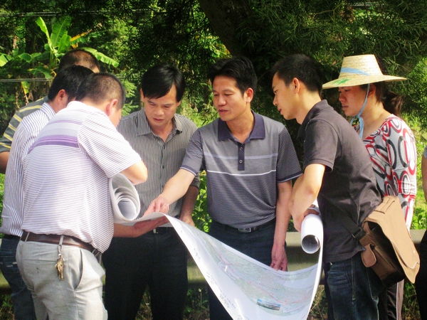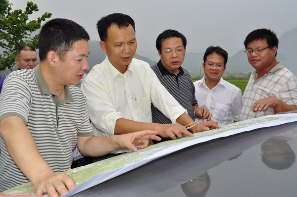 圖一:集團(tuán)公司朱堅(jiān)和董事長(zhǎng)(右3)考察來(lái)賓至馬山、馬山至平果高速公路項(xiàng)目