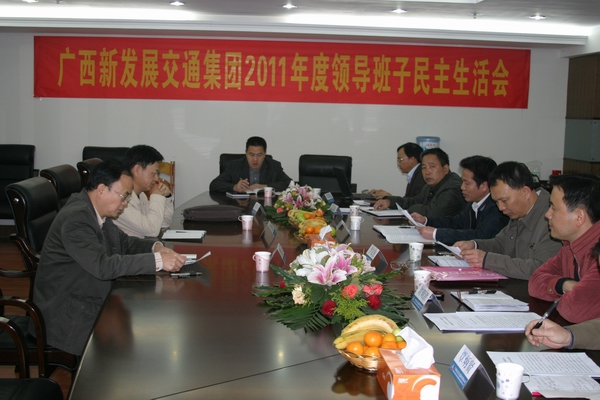 12月21日,廣西新發(fā)展交通集團(tuán)有限公司黨委在南寧召開了以“堅(jiān)持以人為本企業(yè)文化理念,發(fā)揚(yáng)密切聯(lián)系職工群眾作風(fēng)”為主題的2011年黨政領(lǐng)導(dǎo)班子民主生活會。自治區(qū)交通運(yùn)輸廳總工程師王劼耘、廳直屬機(jī)關(guān)黨委專職副書記羅華芝到會指導(dǎo)。集團(tuán)公司朱堅(jiān)和、李定倫、張友坐、劉明洪、鄧遠(yuǎn)志、覃炳賢等六位領(lǐng)導(dǎo)班子成員出席會議,集團(tuán)公司機(jī)關(guān)黨支部書記列席會議。