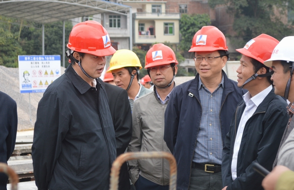 11月23日,自治區(qū)交通運輸廳廳長潘巍蒞臨那坡至平孟口岸公路施工現場檢查指導工作,集團公司董事長朱堅和、百色市副市長陶榮鉛等相關領導陪同檢查。