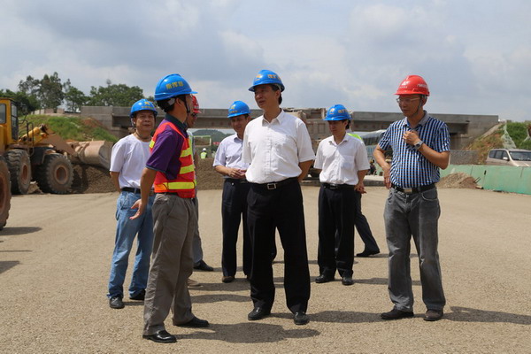 8月7日上午,自治區(qū)國資委主任、黨委書記管躍慶一行來到集團公司承建的沿海高速改擴建項目工地,在那馬北互通立交工地現(xiàn)場,全面了解項目投資、業(yè)績考核完成情況和一期工程及后續(xù)改擴建工程推進情況,察看沿海高速改擴建一期工程瀝青路面施工進展。管躍慶要求,要認真貫徹中央和自治區(qū)黨委、政府穩(wěn)增長、促改革、調結構、惠民生的決策部署,主動作為,扎實抓好項目管理、建設質量和安全生產(chǎn),為我區(qū)經(jīng)濟社會發(fā)展和實現(xiàn)“兩個建成”作出積極貢獻。集團公司總經(jīng)理李定倫陪同調研。