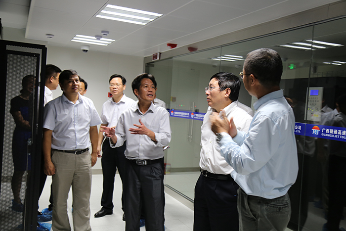 簽約儀式結(jié)束后,與會的各位領(lǐng)導(dǎo)共同參觀了我集團公司控股企業(yè)——廣西捷通公司ETC中心機房,并聽取了技術(shù)人員對中心系統(tǒng)建設(shè)情況、設(shè)備安裝使用情況、機房運轉(zhuǎn)流程、技術(shù)支持、監(jiān)控及操作、消防通道等情況的匯報。
