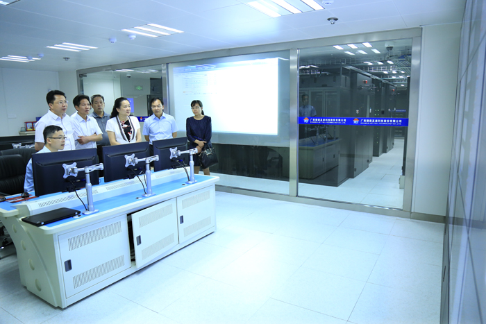 黃敏一行到建設(shè)在捷通公司的全區(qū)ETC數(shù)據(jù)中心機房詳細了解了數(shù)據(jù)中心建設(shè)投資、云技術(shù)、機房環(huán)境監(jiān)控、報警系統(tǒng)等情況。