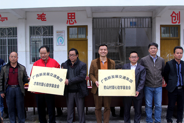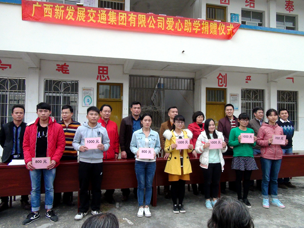當(dāng)日,集團(tuán)公司在豹山村舉行愛心助學(xué)捐贈(zèng)儀式,掛牌成立了廣西新發(fā)展交通集團(tuán)愛心助學(xué)基金會(huì),向扶貧聯(lián)系點(diǎn)200多名貧困學(xué)子捐資助學(xué)獻(xiàn)愛心。劉明洪副總經(jīng)理殷切希望貧困學(xué)子們努力學(xué)習(xí),常懷感恩之心,學(xué)好本領(lǐng),將來(lái)回報(bào)家鄉(xiāng)、回報(bào)社會(huì)。