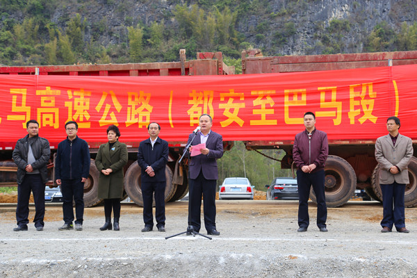 集團(tuán)公司副董事長、總經(jīng)理、黨委副書記唐咸秋在會上發(fā)表講話,他表示本項目的建設(shè),將極大改善我區(qū)尤其是河池等地的交通狀況和投資環(huán)境,為確保我區(qū)打贏脫貧攻堅戰(zhàn)的勝利,具有十分重要的意義。他表態(tài)集團(tuán)公司將充分發(fā)揮人才優(yōu)勢、技術(shù)優(yōu)勢和全產(chǎn)業(yè)鏈優(yōu)勢,安全、優(yōu)質(zhì)、高效、廉潔地建好項目,為營造“三大生態(tài)”、實現(xiàn)“兩個建成”、譜寫建黨百年廣西發(fā)展新篇章作出新的更大的貢獻(xiàn)。河池市黃光華書記表示,賀巴高速是脫貧致富之路、是共建共贏之路、是圓夢小康之路,他要求河池市各級黨委、政府要高度重視,沿線群眾要積極配合高速公路的建設(shè)。