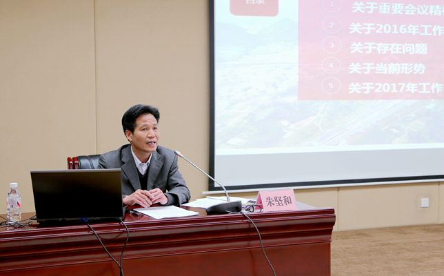 朱堅(jiān)和在講話指出,2017年乃至整個(gè)“十三五”時(shí)期,集團(tuán)公司正處于補(bǔ)齊短板、強(qiáng)基固本、結(jié)構(gòu)調(diào)整、提質(zhì)增效、深化改革、創(chuàng)新驅(qū)動、轉(zhuǎn)型升級、二次創(chuàng)業(yè)的黃金時(shí)期。我們要堅(jiān)持穩(wěn)中求進(jìn)工作總基調(diào),堅(jiān)持牢固樹立新發(fā)展理念,堅(jiān)持以提高發(fā)展質(zhì)量和效益為中心,緊緊圍繞“再造一個(gè)新發(fā)展”宏偉目標(biāo),奮力擔(dān)當(dāng)“開拓更大平臺,發(fā)揮更大作用,承擔(dān)更大責(zé)任”新使命,堅(jiān)持“一二三四”新戰(zhàn)略,堅(jiān)持“一轉(zhuǎn)二提三攻堅(jiān)”新要求,繼續(xù)做好“三篇文章”,全面加強(qiáng)黨的建設(shè),全力推進(jìn)“轉(zhuǎn)型升級、二次創(chuàng)業(yè)”,努力成為自治區(qū)黨委政府最可信賴的依靠力量。