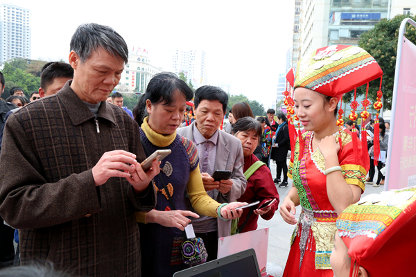 身著統(tǒng)一服裝,肩披綬帶、胸扣團徽的ETC推廣青年突擊隊員向過往的行人宣傳ETC的相關(guān)知識,耐心解答車主朋友們的疑問,并現(xiàn)場演示ETC八桂行卡的安裝過程,使廣大社區(qū)市民對ETC有了一個初步的認(rèn)識。6名身著靚麗壯族服飾瞬間吸引住了往來市民的眼光,紛紛前來咨詢業(yè)務(wù)?;顒悠陂g,一卡通公司客服人員熱情地向社區(qū)居民發(fā)放了100張“桂民卡·體驗卡”,亦有不少市民被桂民卡精美的版面設(shè)計和強大的互聯(lián)互通功能所吸引,紛紛在現(xiàn)場辦理購卡及充值業(yè)務(wù)。票通公司客服人員則向社區(qū)居民推介了廣西人自己的道路客運網(wǎng)絡(luò)售票平臺——“桂客行”,耐心地向市民解析平臺功能、覆蓋范圍等,并協(xié)助市民下載“桂客行”手機APP。