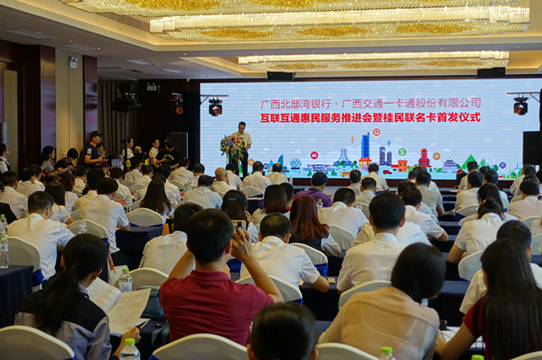 6月21日,新發(fā)展集團直屬企業(yè)廣西交通一卡通股份有限公司(以下簡稱“一卡通公司”)與廣西北部灣銀行(以下簡稱“灣行”)互聯(lián)互通惠民服務(wù)推進會暨“廣西北部灣銀行·桂民卡”聯(lián)名卡首發(fā)儀式在南寧隆重舉行。自治區(qū)國資委副主任王曉華,自治區(qū)交通運輸廳副廳長陸曉明出席會議并致辭。集團公司副董事長、總經(jīng)理、黨委副書記唐咸秋,黨委副書記張友坐,總工程師覃炳賢等領(lǐng)導(dǎo),及各相關(guān)地市交通運輸局、廣西北部灣銀行、廣西交通一卡通股份有限公司、中國銀聯(lián)廣西分公司等相關(guān)單位負(fù)責(zé)人,首批受邀辦卡客戶代表共100多人參加了會議。