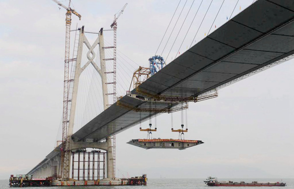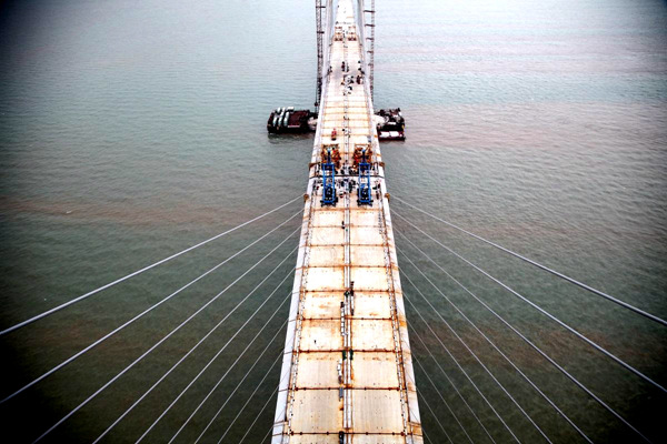 參建以來,該公司抽調(diào)了精干的技術(shù)管理團(tuán)隊(duì)常駐大橋施工現(xiàn)場,建立了高效的施工監(jiān)控組織機(jī)構(gòu)。技術(shù)人員在伶仃灣海面上連續(xù)晝夜備戰(zhàn),克服了海面風(fēng)浪大、海上工作平臺簡陋等重重困難,攻克了橋梁節(jié)段吊裝溫差影響大、拼裝就位控制影響因素多等技術(shù)難題,為港珠澳大橋的順利施工提供了強(qiáng)有力的技術(shù)支撐。