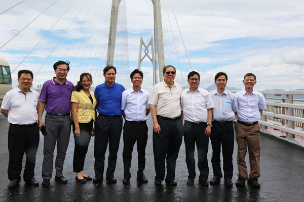 近日,廣西新發(fā)展交通集團(tuán)黨委書記、董事長朱堅(jiān)和陪同自治區(qū)人民政府副主席陳剛視察港珠澳大橋工程項(xiàng)目。陳剛副主席對港珠澳大橋工程項(xiàng)目施工質(zhì)量表示稱贊。