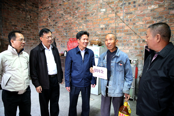 在環(huán)江縣明倫鎮(zhèn),朱堅和董事長、張友坐副書記一行先后到集團(tuán)公司駐村“第一書記”工作的環(huán)江縣明倫鎮(zhèn)豹山村、相堯村、才帛村開展走訪慰問活動,與駐村“第一書記”開展座談會深入交流,實(shí)地了解脫貧攻堅各項工作開展情況,同時走訪慰問了當(dāng)?shù)乩щy群眾,為他們送去了慰問金和油等生活用品。