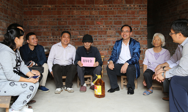10月25日,集團(tuán)公司副總經(jīng)理李德智、辦公室主任磨立堂,工程院黨總支部書記、院長謝登禹以及合山市人大常委會(huì)主任藍(lán)賓北一行到集團(tuán)公司扶貧聯(lián)系來賓合山市河里鎮(zhèn)河里村開展精準(zhǔn)扶貧日走訪慰問活動(dòng)。通過開展座談交流,進(jìn)一步掌握河里村脫貧攻堅(jiān)進(jìn)展情況,并為下一步脫貧工作提出建議與對(duì)策。同時(shí),還來到河里村韋啟助、羅耀權(quán)、曾有姣、韋遷池等貧困戶的家里,了解生產(chǎn)生活情況,并送上了慰問金和慰問品。