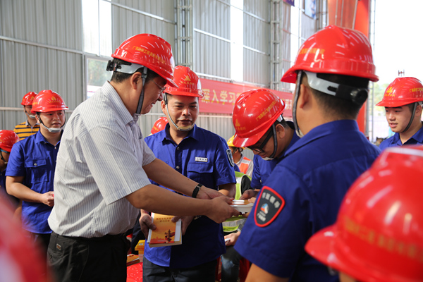 王躍飛給現(xiàn)場(chǎng)員工贈(zèng)送黨的十九大報(bào)告有關(guān)書(shū)籍?