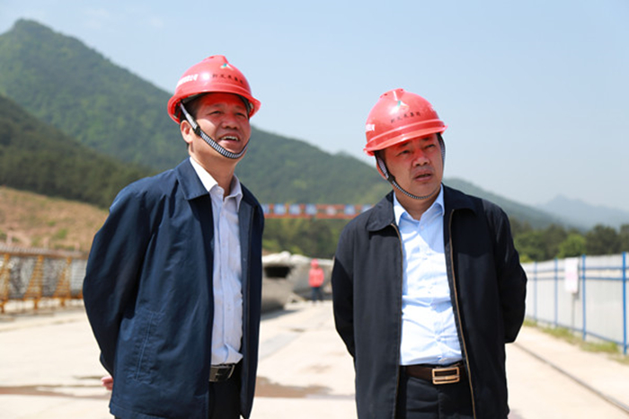 圖五:集團(tuán)公司黨委書(shū)記、董事長(zhǎng)朱堅(jiān)和(左)與賀州市副市長(zhǎng)陳翼明(右)在施工現(xiàn)場(chǎng)調(diào)研