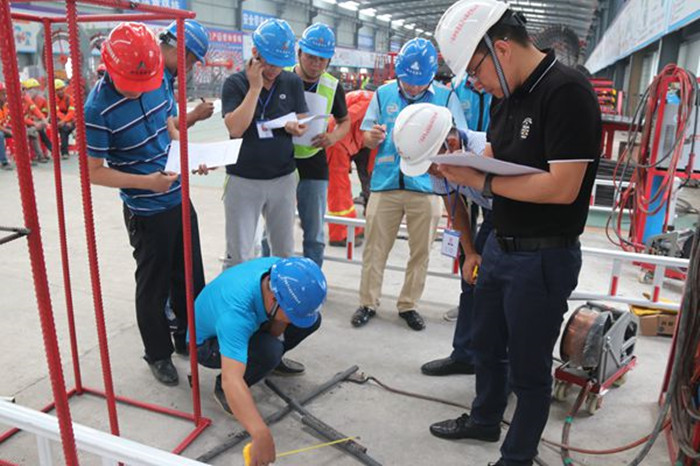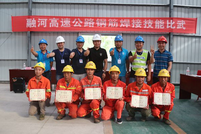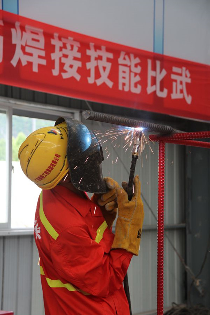 當(dāng)參賽選手調(diào)試好設(shè)備,將比賽所需材料準(zhǔn)備妥當(dāng)之后,隨著主持人一聲令下,參賽選手立即嚴(yán)格按照相關(guān)安全操作規(guī)定,緊張而有序地進(jìn)行鋼筋焊接。一時(shí)間賽場(chǎng)上焊花四起,引來(lái)不少技術(shù)工人觀摩學(xué)習(xí)。經(jīng)過(guò)兩個(gè)多小時(shí)的激烈角逐,各位參賽選手相繼完成焊接作業(yè)。評(píng)委小組成員仔細(xì)查看每一件參賽作品,嚴(yán)格按照評(píng)分標(biāo)準(zhǔn)采用儀器對(duì)鋼筋試件進(jìn)行檢測(cè)評(píng)分。經(jīng)過(guò)評(píng)委小組客觀、公正、公平的評(píng)審。最終胡滿倉(cāng)、韋加生等六名選手脫穎而出,分別以小組第一、第二名的成績(jī),榮獲融河高速“最美工匠”稱號(hào)。