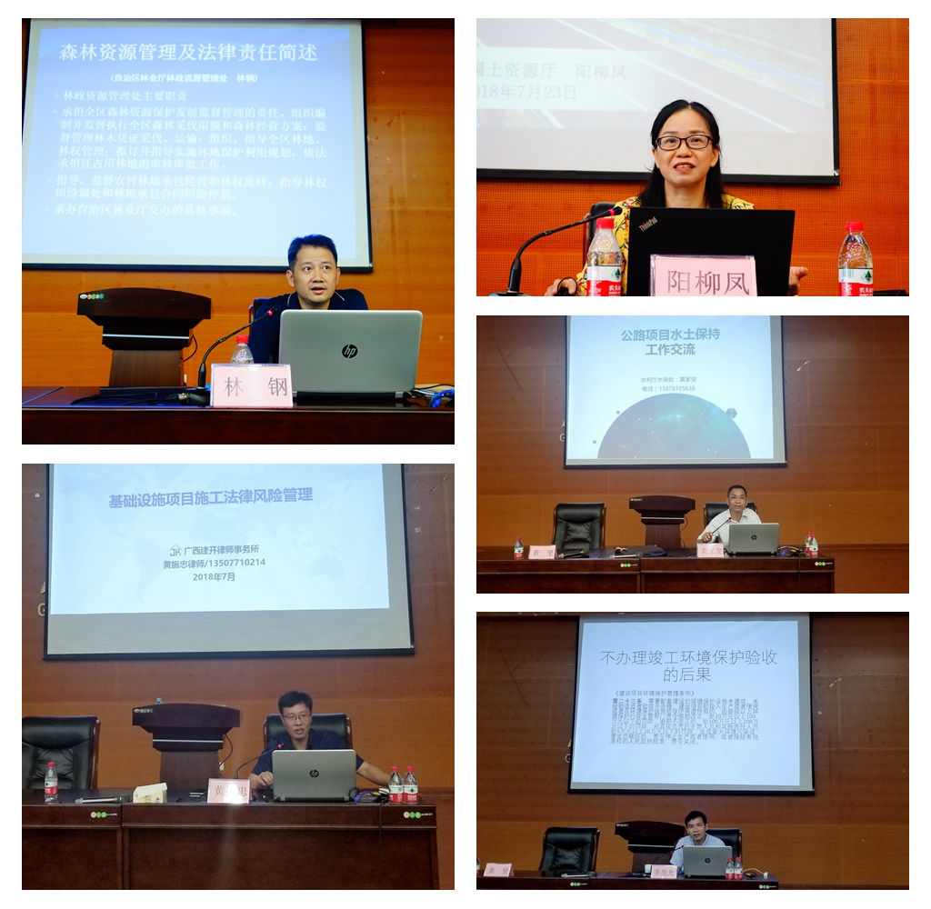 此次培訓(xùn)邀請了自治區(qū)國土資源廳規(guī)劃處副處長陽柳鳳、林業(yè)廳林政處副處長林鋼、環(huán)境保護(hù)廳環(huán)評處處長李亮光、水利廳水土保持處副處長黃家安以及廣西建開律師事務(wù)所主任黃振忠律師5位專家圍繞項(xiàng)目建設(shè)過程中的國土、林地、環(huán)境保護(hù)、水土保持以及項(xiàng)目經(jīng)營常見法律政策問題進(jìn)行專題授課。此次培訓(xùn)緊貼建設(shè)項(xiàng)目管理的實(shí)際需求,內(nèi)容豐富,針對性強(qiáng)。通過培訓(xùn),提高了廣大建設(shè)項(xiàng)目管理人員的法律政策水平,增強(qiáng)了處理具體法律問題的能力,對今后依法依規(guī)建設(shè)項(xiàng)目起到很好的促進(jìn)作用。
