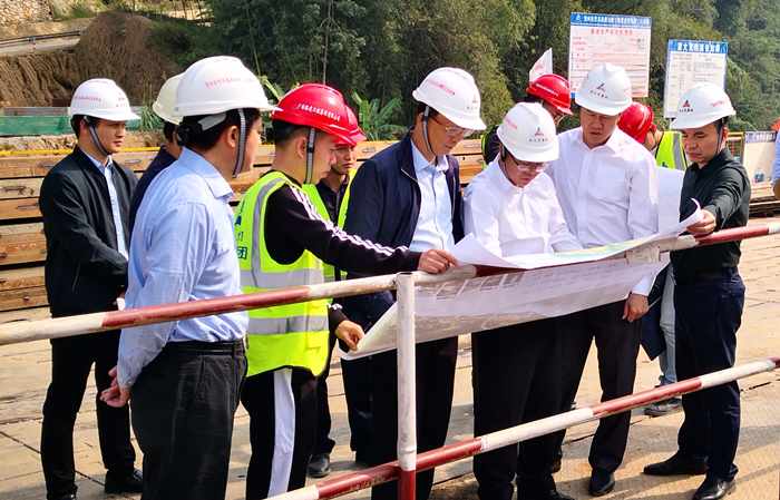 賀州至巴馬高速公路(都安至巴馬段)紅水河特大橋調(diào)研,新恒通公司黨委書記、董事長(zhǎng)賴水平,黨委副書記、副董事長(zhǎng)、總經(jīng)理、總工程師藍(lán)日彥,北投集團(tuán)工會(huì)副主席呂兢陪同調(diào)研。