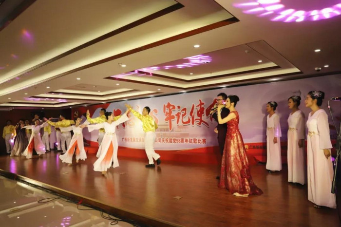 來(lái)自新發(fā)展集團(tuán)本部,各直屬單位、指揮部的11支代表隊(duì)歡聚一堂,用滿(mǎn)腔熱情唱響紅色旋律,歌頌黨的恩情,獻(xiàn)禮建黨98華誕。其中,新發(fā)展集團(tuán)本部吟唱余音渺渺的《愛(ài)國(guó)歌》,用現(xiàn)代舞和朗誦的形式表現(xiàn)個(gè)人與祖國(guó)血脈相連、風(fēng)雨同當(dāng)?shù)那殂?,最終拔得頭籌;欽北改擴(kuò)建指揮部、人防設(shè)計(jì)院緊緊結(jié)合“不忘初心、牢記使命”主題教育的根本遵循,分別合唱《不忘初心》《走向復(fù)興》兩首曲目,并做到演唱連貫、節(jié)奏鮮明、情緒準(zhǔn)確,分別獲得二等獎(jiǎng);大浦公司、融河高速指揮部、鐘昭高速指揮部則在確保歌曲的完整度、準(zhǔn)確度、協(xié)調(diào)度的同時(shí),在服裝、隊(duì)形、伴奏上別出心裁,最終獲得三等獎(jiǎng);其余隊(duì)伍也各具特色,使所選紅歌綻放出燦爛的光彩,展現(xiàn)出新發(fā)展集團(tuán)奮斗拼搏的精神面貌。