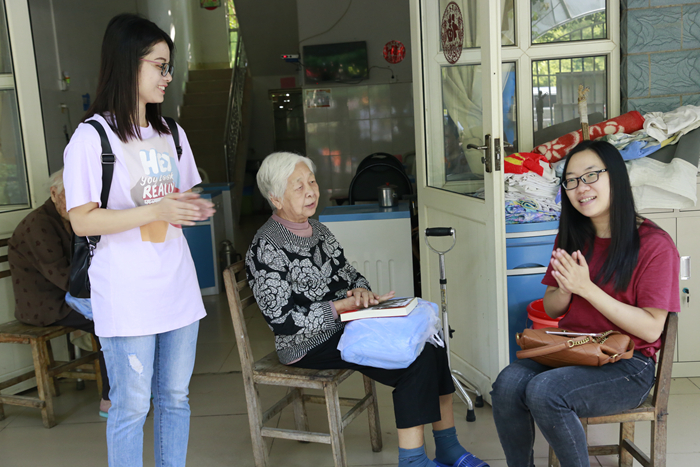 志愿者們圍坐在老人旁邊,詢問他們的生活情況、身體情況,叮囑他們注意保暖、保重身體,傾聽他們的人生故事和叮嚀告誡,并為給他們唱紅歌、讀故事、講新聞,豐富他們的精神生活。老人們對志愿者的到來感到十分高興,和志愿者一起合唱《團(tuán)結(jié)就是力量》、《歌唱祖國》、《沒有共產(chǎn)黨就沒有新中國》等歌曲。護(hù)老院處處洋溢著歡樂的氣氛,老人們的臉上洋溢著幸福。