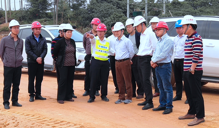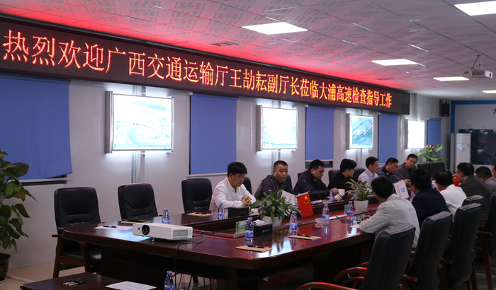 12月23日下午,區(qū)交通運輸廳副廳長王劼耘一行到大塘至浦北高速公路項目開展項目建設(shè)檢查指導(dǎo)。自治區(qū)交通運輸廳建設(shè)管理處副處長余建國、北投集團(tuán)總工程師覃炳賢、欽州市交通局局長鄒滿麗、靈山縣副縣長陸漢川、新發(fā)展集團(tuán)總經(jīng)理藍(lán)日彥、大浦公司副總經(jīng)理姚雷、中建八局南方公司總經(jīng)理助理龍永強(qiáng)等陪同。